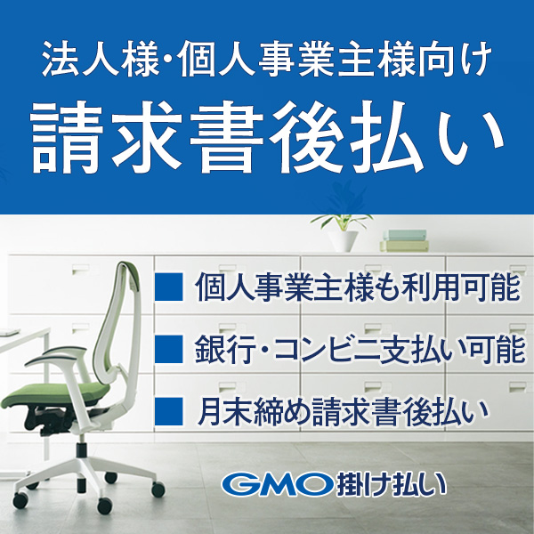 法人企業(個人事業主を含む)を対象とした決済方法で、代金お支払いは商品到着後にGMOペイメントサービス株式会社より郵送されるご請求書にて「後払い」ができる安心・簡単な決済サービスです。