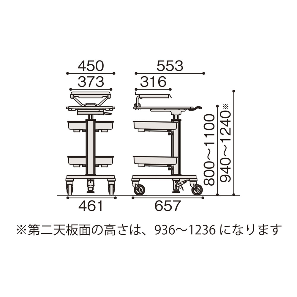 誰にでも使いやすい300mmの天板昇降ストローク