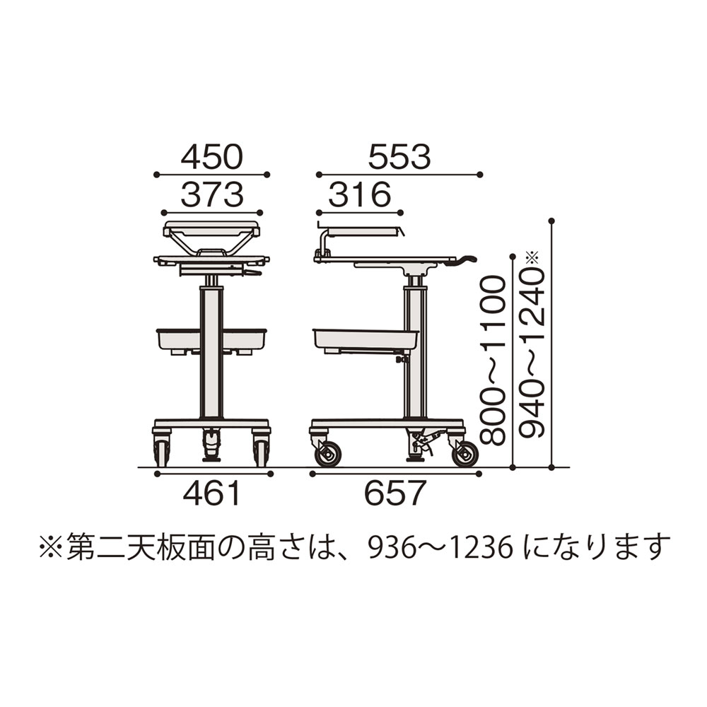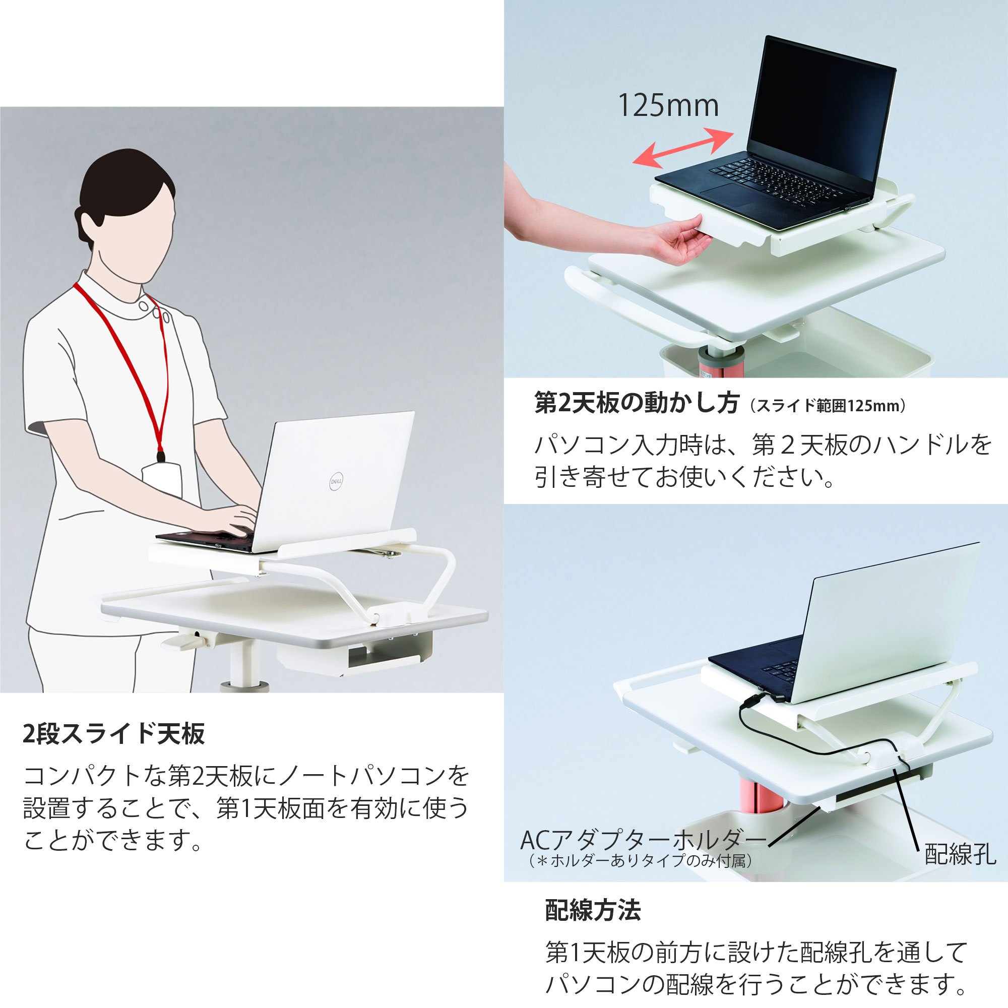 コンパクトな第2天板にノートパソコンを設置することで、第1天板面を有効に使うことができます。(パソコン入力時は、第2天板のハンドルを引き寄せてお使いください)