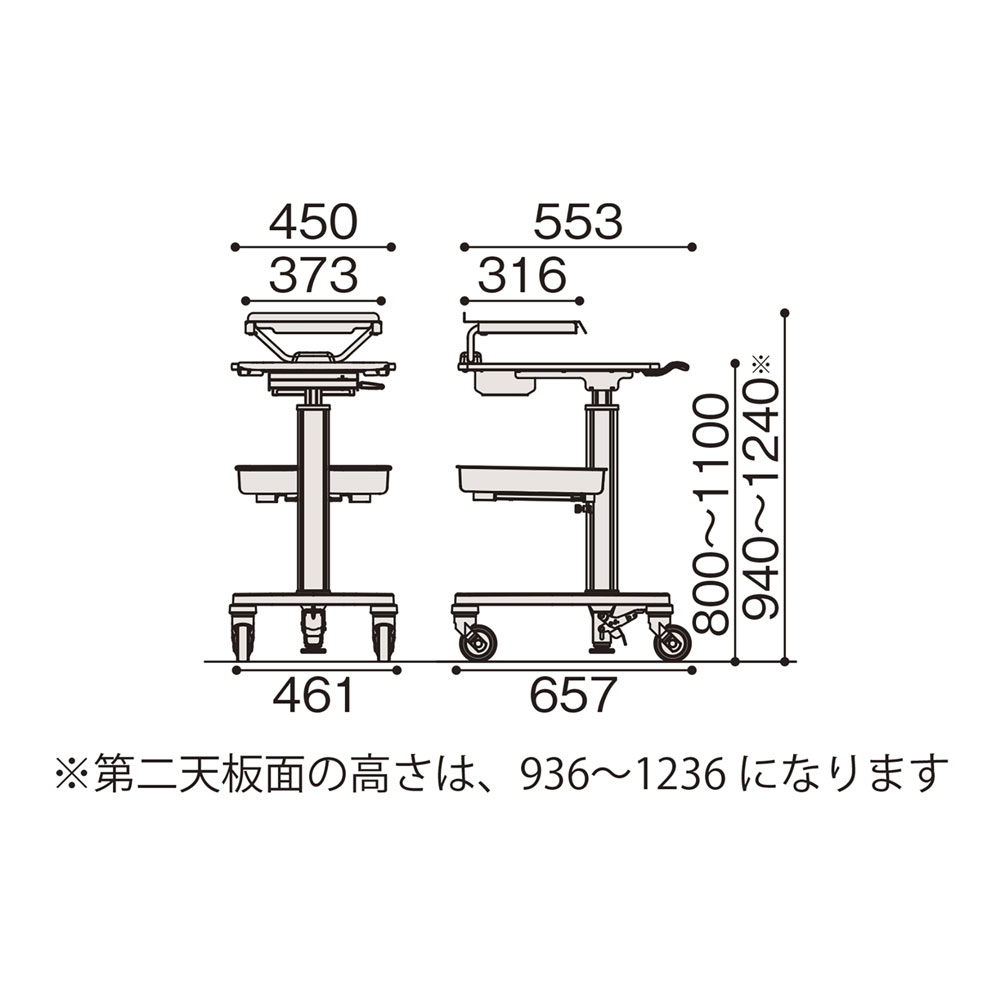 コンパクトな第2天板にノートパソコンを設置することで、第1天板面を有効に使うことができます。(パソコン入力時は、第2天板のハンドルを引き寄せてお使いください)