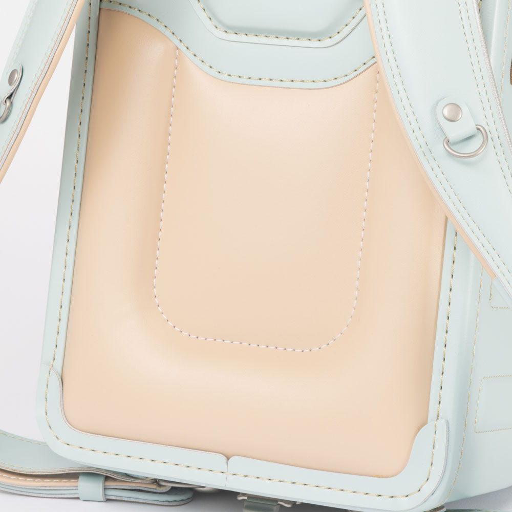 ◎ 背裏:背裏部分にはくぼみがあり、通気性がよく、素材にはクラリーノロベニカを採用し、サラサラとした肌触りを実現しています。