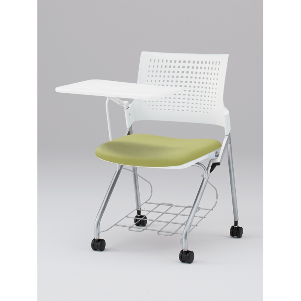 モノンチェア ネスタブルタイプ KLD218DLRZ5W9L8 樹脂メッシュバック・メモ台付・棚付 ビニールレザー DL張地[L8/アボカドグリーン]
