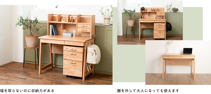 また天板下にある引き出しがワゴン式に変化するなど、子供が成長しても、より使いやすくなるように進化していきました。