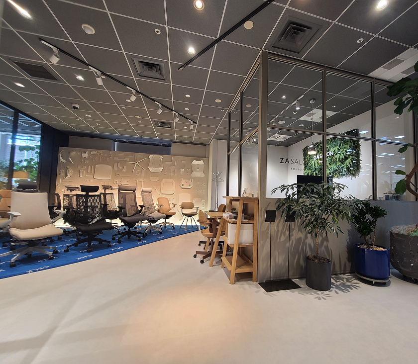 樹脂とゴムの中間的なエラストマー素材は、ほどよい柔らかさとコシで上半身の動きを柔軟にサポート。短冊型のメッシュデザインは、絶妙な陰影と透け感で圧倒的な存在感を放ち、アクティブな空間やインテリジェントな空間を実現します。