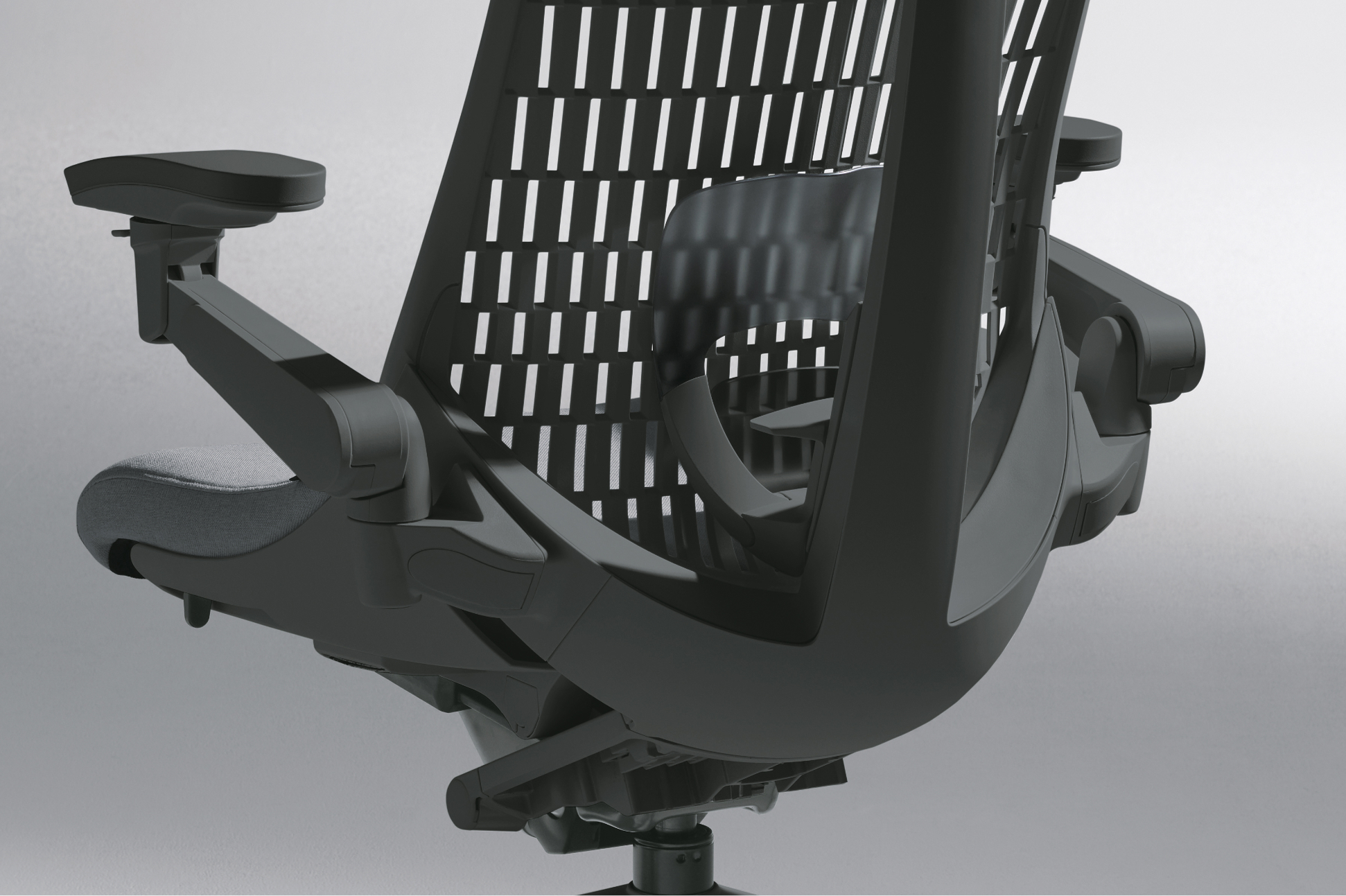 成瀬さん:背もたれの支柱から滑らかにつながる一体感のあるシルエットを追求しました。そのために、回転機構や取り付けマウントを極限まで小さく、薄く設計しています。