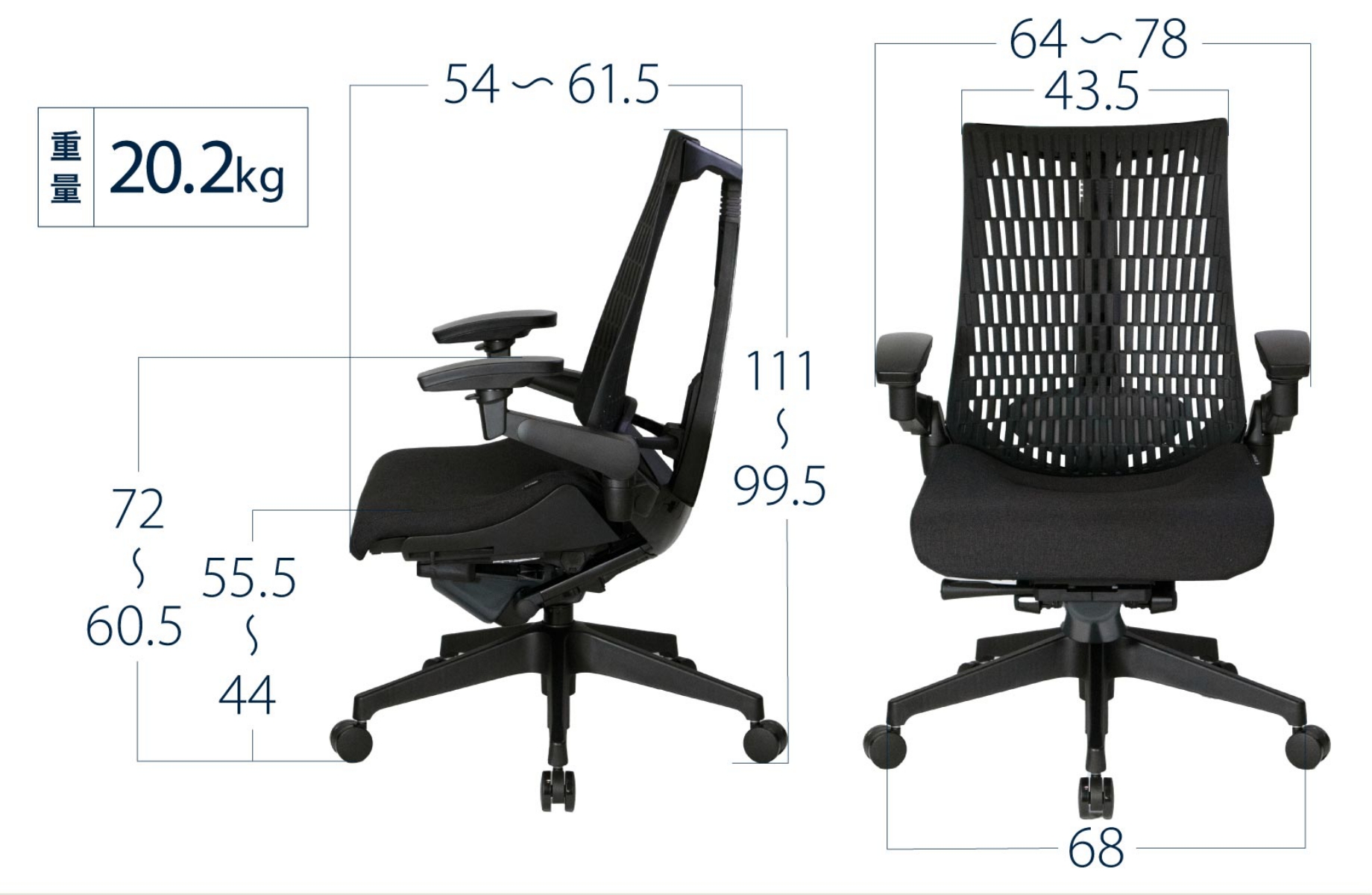 アームレスト高 72-60.5cm
