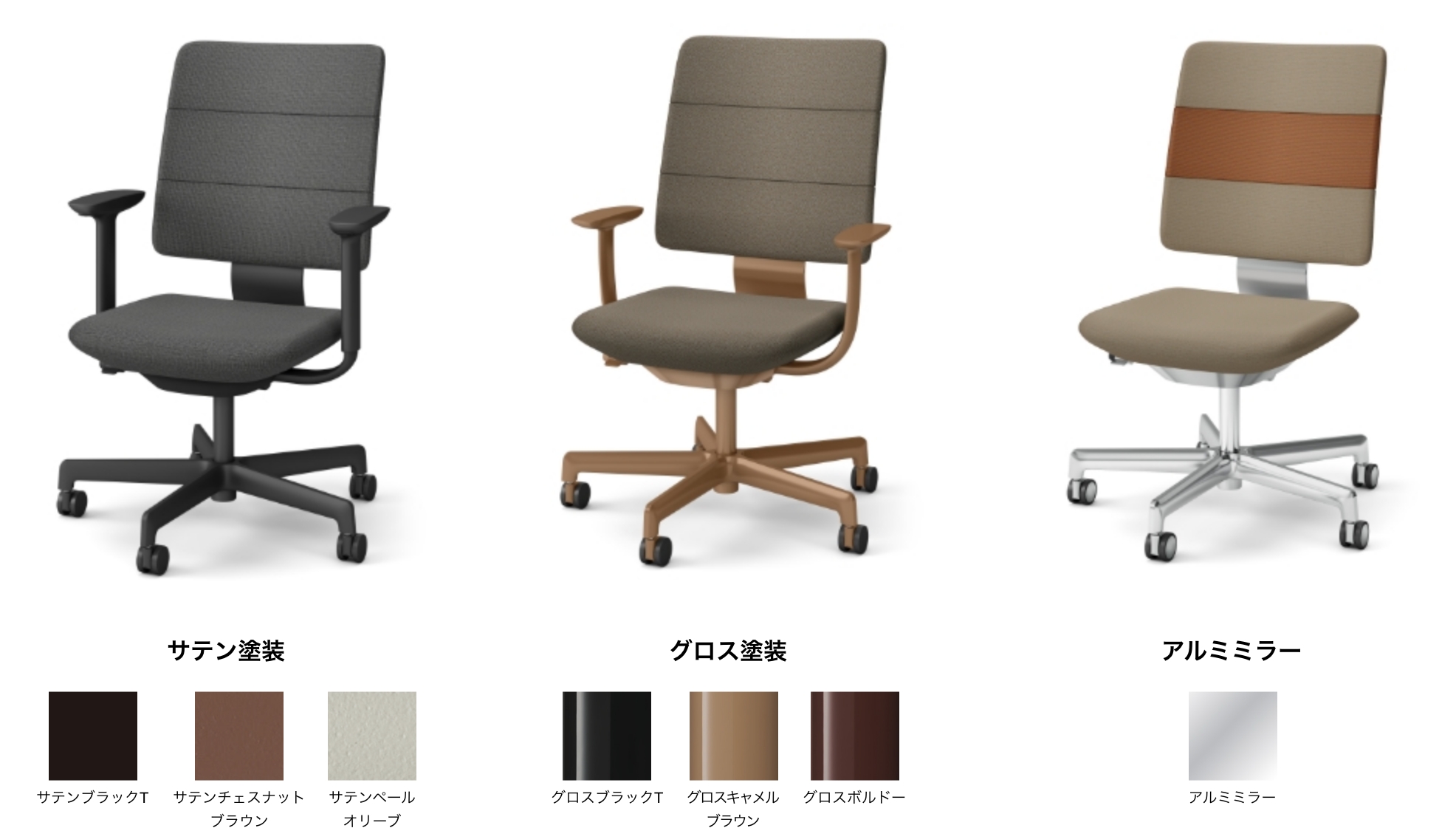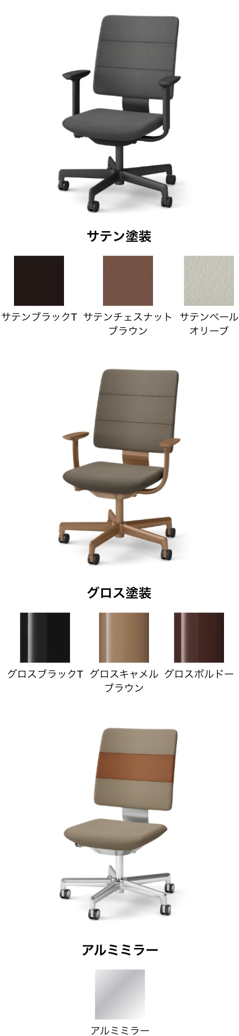 アルミミラーとサテン塗装では、デザインを生かして背もたれの中に色を追加されたパターンも選択が可能です。