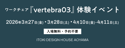 “vertebra03”の特長は、拡張性とフレキシビリティ。先進的な機能を兼ね備えながらも、それを感じさせない有機的で美しいフォルムは、フレームや背座シートのカラーから素材まで自由自在。ユーザーの創造力を刺激する選択肢を少しずつ増やしながら、働く環境や個人の美意識を投影するキャンバスとして、“vertebra03”をアップデートしてきました。日本の「働く」をもっと自由に。これからも私たちは未来に向けて、普遍のカタチを更新していきます。